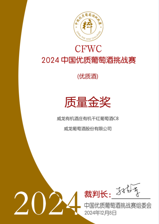 中国优质葡萄酒挑战赛金奖