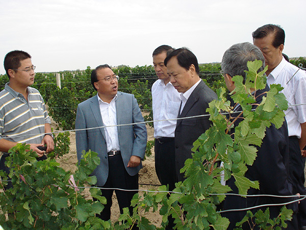 2012年,时任国务院副秘书长焦焕成(左四)视察威龙公司
